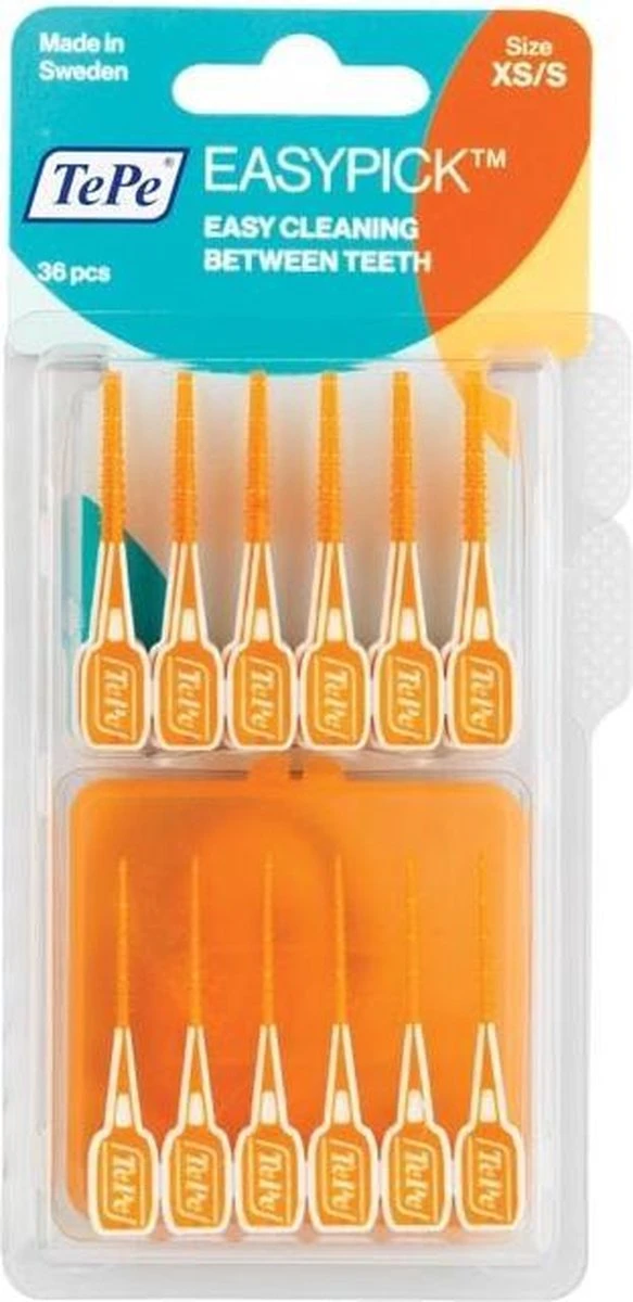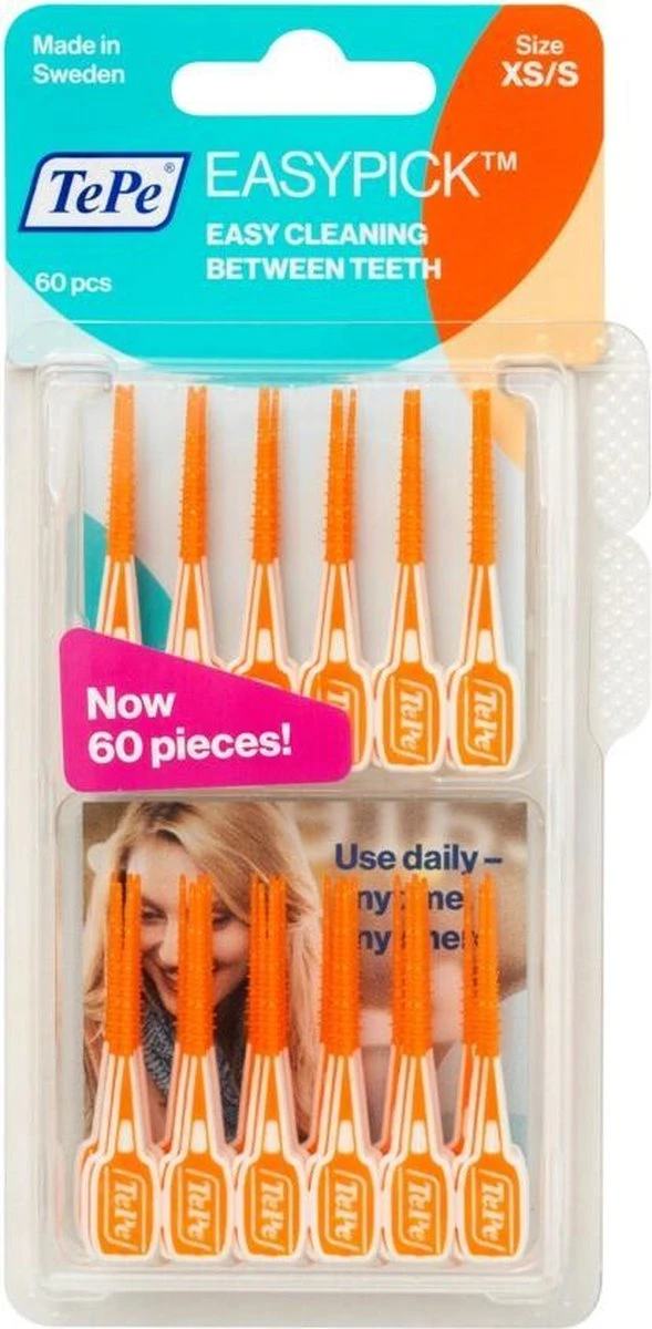 De TePe EasyPick is een zachte siliconen rager waarmee je gemakkelijk reinigt tussen de tanden en kiezen. De taps toelopende punt geeft eenvoudig toegang tot de interdentale ruimte. De TePe Easypick XS-S (dun) is een zachte tandenstoker. Verkrijgbaar in twee maten, XS/S en M/L.