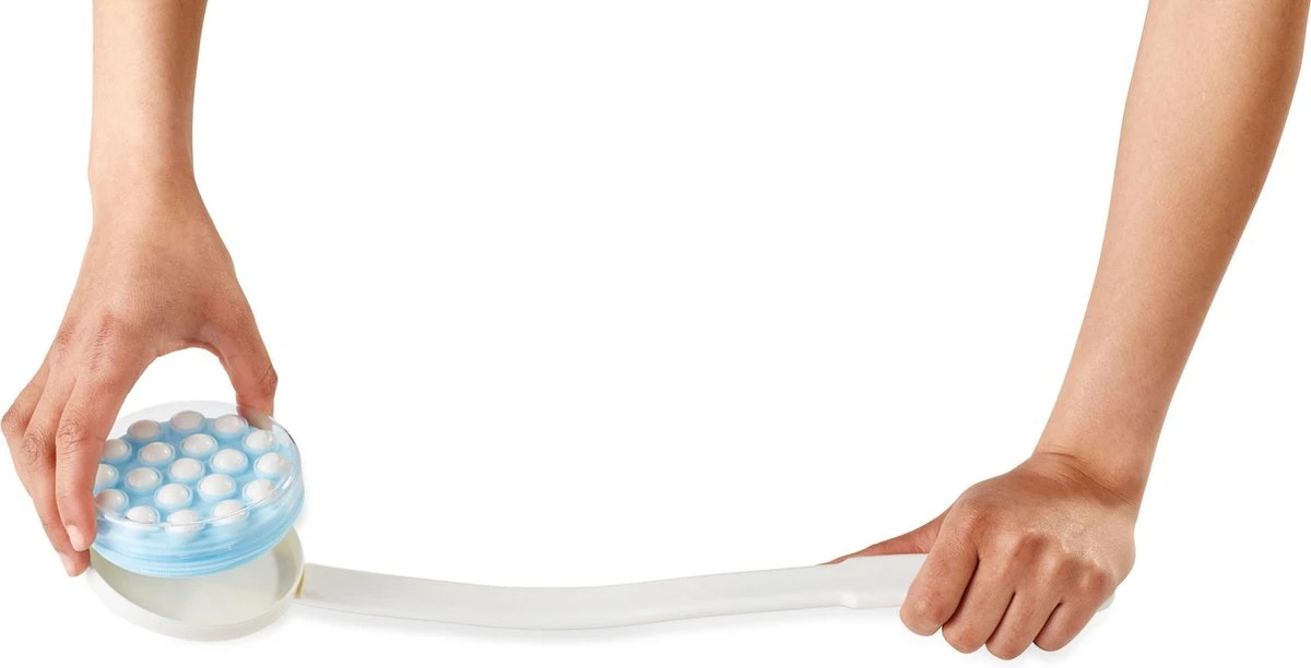 De aanbrenghulp kan men gebruiken om zich eenvoudig in te smeren met bodylotion of te wassen met douchegel. Vul de kop met lotion of douchegel en laat de 19 roterende balletjes de spieren masseren, terwijl ze tegelijkertijd de lotion gelijkmatig over het lichaam verdelen. Het verlengde handvat zorgt ervoor dat men moeilijk te bereiken plekken op het lichaam kan bereiken, zoals de rug of de onderbenen en voeten. Het handvat kan eraf worden gehaald, zodat men de armen of benen met meer kracht kan masseren, zonder vette handen te krijgen.