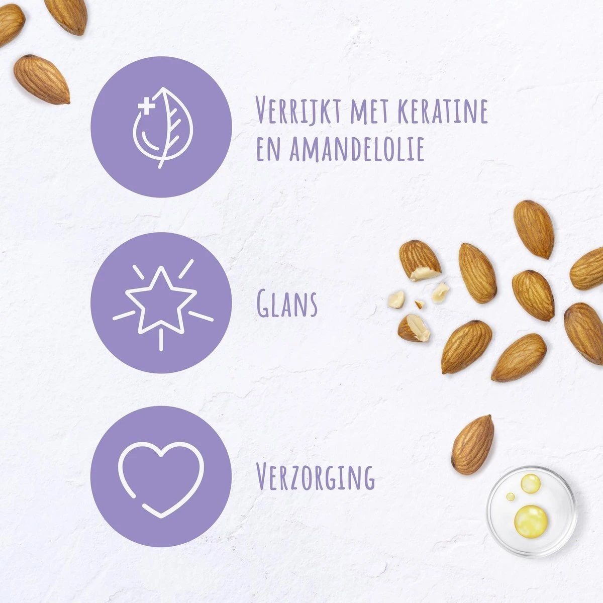 - Shampoo en conditioner verrijkt met keratine en amandelolie