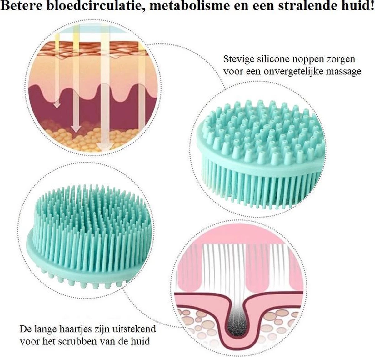 Blubs® – Badborstel – Dry Brush – Rug Scrubber – Lichaamsborstel – Rugborstel Douche Met Steel – Huidborstel – Doucheborstel – Bad- & Doucheaccessoires – Badborstel Met Steel – Doucheborstel Rugborstel – Siliconen Borstel – Massage – Cyaan