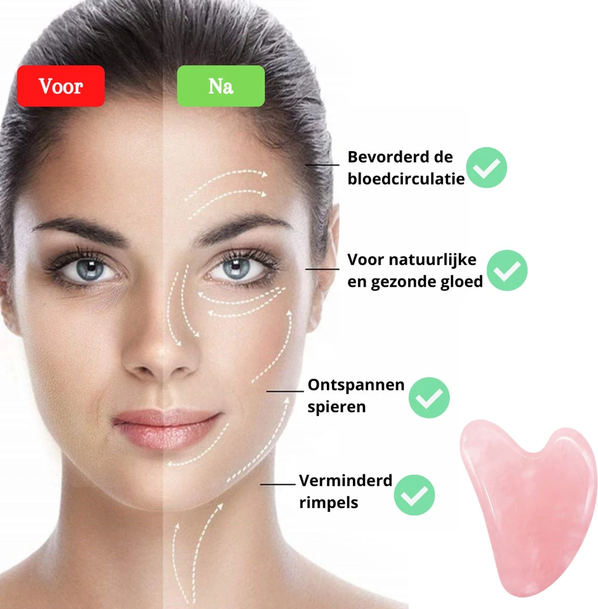 - Gebruik de Schraper tijdens de Gua Sha massage altijd zachtjes, om te voorkomen dat je krassen in je gezicht krijgt.