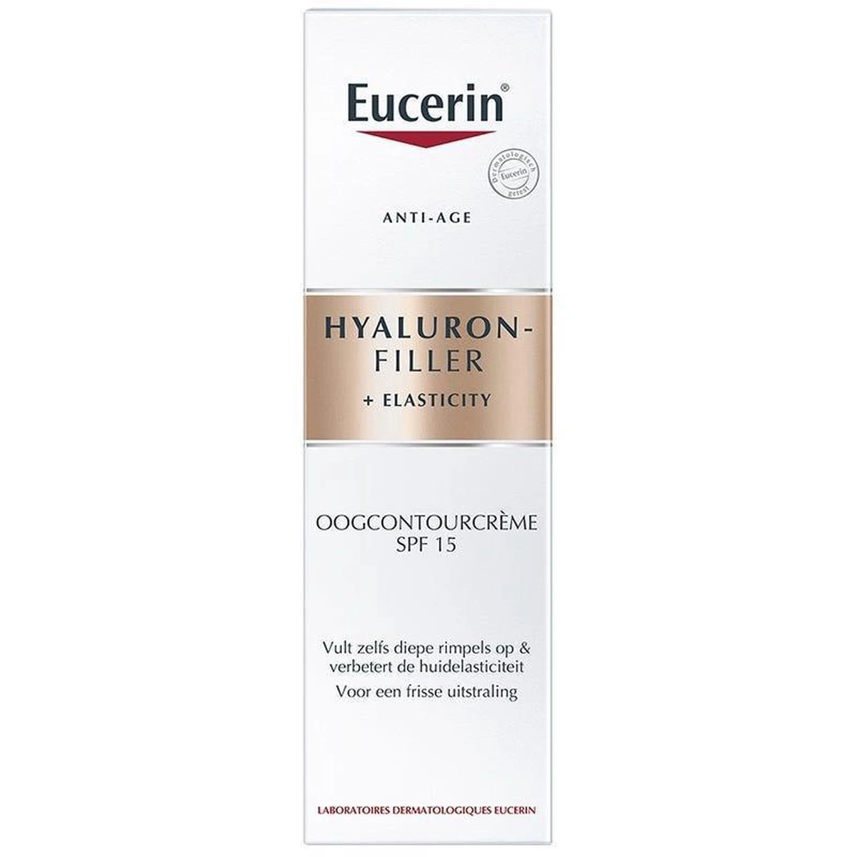 Eucerin Hyaluron-Filler + Elasticity Oogcrème is een anti-age oogcrème met SPF15. Je huid krijgt weer een frisse en opgewekte teint doordat rimpels worden opgevuld en de huid rond de ogen weer wordt versoepeld.