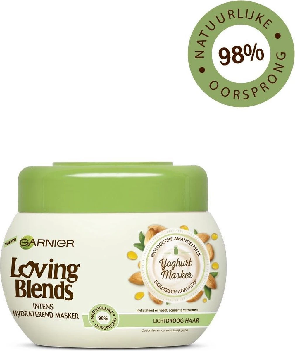 Loving Blends Voedende Amandelmelk Yoghurt Masker is het nieuwe recept van Garnier voor lichtdroog haar. De formule bevat voedende amandelmelk en agavesap wat zorgt dat het haar beter is gehydrateerd en gerevitaliseerd. Gebruik het masker 2 keer in de week voor intensieve hydratatie na de Voedende Amandelmelk conditioner en masker.