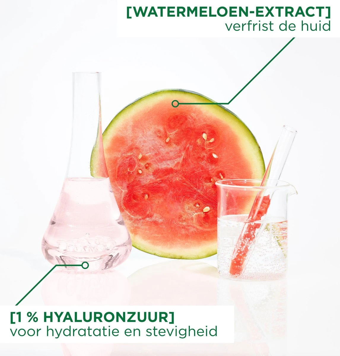 Op zoek naar een boost van je huid, maar zit je krap in tijd? Het hyaluronzuur Sheet Mask van Garnier met ampullen-serum hydrateert je huid intenstief en maakt deze egaler in slechts 5 minuten. Dit innovatieve gezichtsmasker van Garnier bevat een geconcentreerd ampullen-serum met hyaluronzuur en watermeloen-extract. 1% Hyaluronzuur helpt de huid verlichten en om de natuurlijke glow van jouw huid te herstellen. Watermeloenextract is een dorstlessende superfood die het gezichtsmasker, in combinatie met hyaluronzuur, verstevigend maakt voor de gezichtshuid. De formule van dit gezichtsmasker is effectief voor iedere huid, maar in het bijzonder voor de huid die vermoeid of verslapt aanvoelt.