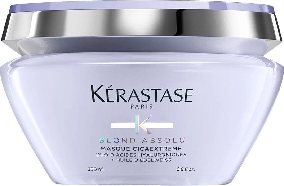 Kérastase Masque Cicaextreme is een intens hydraterend masker voor poreus haar. De crèmeformule is uitermate geschikt voor haar dat net ontkleurd is en zorgt voor een intensieve versterking van de vezelstructuur. Het masker is doordrenkt met het zeer hydraterende Hyaluronzuur, dat de haarvezel conditioneert zonder deze te verzwaren. De baanbrekende gel-in-crème-technologie herstelt en beschermt blond, beschadigd en gehighlight haar van lengte tot punt. De haarschubben worden gesloten en de vezel voelt direct sterker en gezonder. De combinatie van Hyaluronzuur Duo en Edelweiss Olie vult tevens de elasticiteit diep aan, voor meer veerkracht en glans. Gespleten punten worden verminderd en het masker heeft een doeltreffende anti-frizz-werking. Het unieke Hyaluronzuur Duo omvat een krachtige combinatie van Hyaluronzuur met een laag en hoog molecuulgewicht. Het Hyaluronzuur met het lage gewicht zorgt ervoor dat het de vezel diep doordringt om schade te herstellen. Het Hyaluronzuur met het hoge gewicht heeft een intens hydraterende functie, waarbij de vezels worden opgevuld om de elasticiteit en kracht te herstellen.