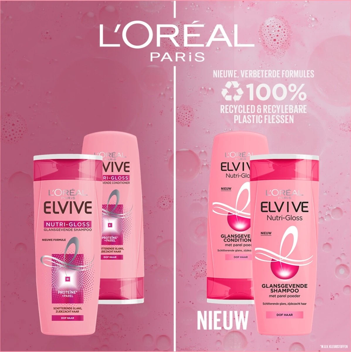 Hoe langer je haar is, hoe gevoeliger het wordt. Het haar kan na verloop van tijd dof worden. Is jouw haar lang en dof dan is deze ontwarrende L’Oréal Paris Elvive Nutri Gloss Conditioner iets voor jou! Zo krijg je weer glanzend haar zonder het te verzwaren. L’Oréal Paris Elvive Nutri Gloss Conditioner is verrijkt met proteïne en parel geeft een gelijkmatige voeding aan de haarvezel, zonder het te verzwaren en geeft je haar een ultieme glans: je haar vangt en reflecteert het licht optimaal. Je haar is perfect gevoed en glad wanneer je deze ontwarrende conditioner gebruikt. Het haar wordt schitterend glanzend en voelt zijdezacht aan.