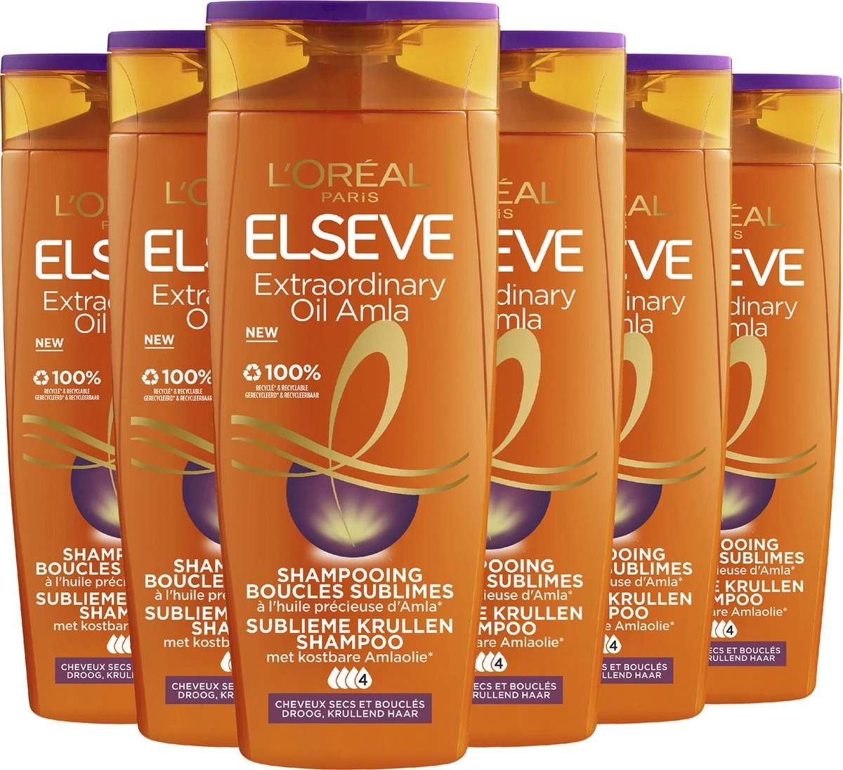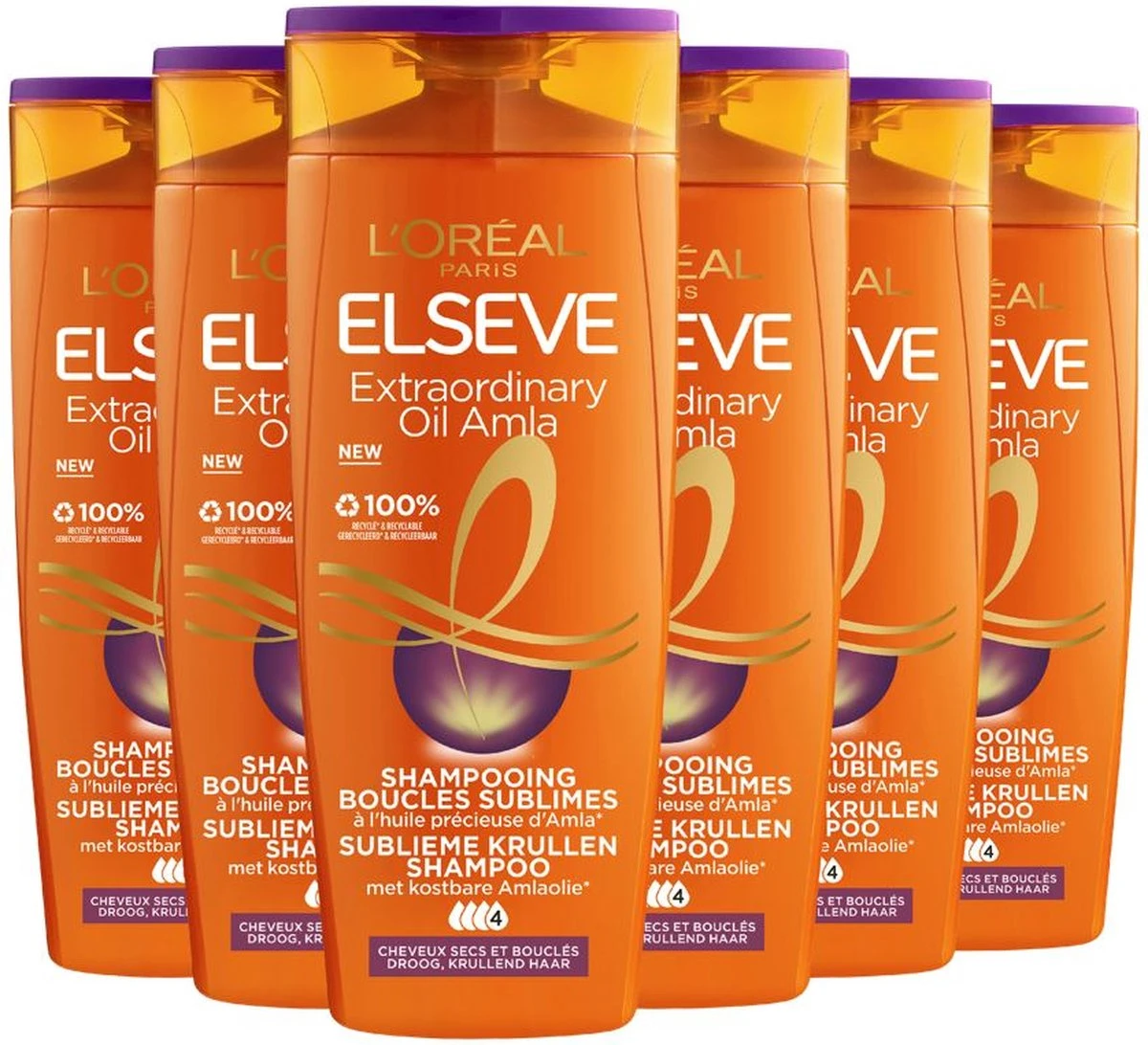 Elseve Extraordinary Oil Sublieme Krullen is een crèmeshampoo voor droog, krullend haar. De formule verrijkt met Amla olie en 6 bloemenolieën heeft een rijke textuur die de krullen intens voedt van wortel tot de puntjes. De shampoo zorgt voor een absolute zachtheid en creëert perfect gedefinieerde en veerkrachtige krullen