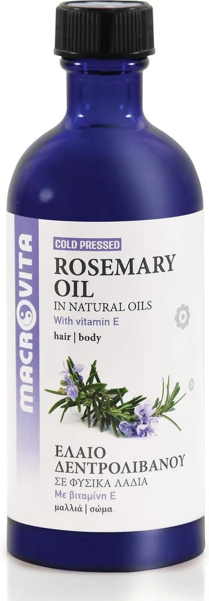 Normaliter is pure rozemarijnolie een bijzonder irriterend ingrediënt. Deze krachtige olie bevat veel antioxidanten en antibacteriële bestanddelen, maar doordat de huid snel beschadigd raakt is het af te raden om natuurlijke rozemarijnolie puur op de huid aan te brengen. Macrovita Griekse cosmetica heeft de rozemarijnolie gecombineerd met draagoliën om een diepere penetratie in de huid te bereiken en daarnaast het vitaminecomplex E, C en F toegevoegd. Door deze krachtige vitaminen wordt de haarwortel gevoed, waardoor haargroei wordt gestimuleerd en daardoor het haar langer en steviger wordt. De natuurlijke haarversteviging wordt extra aangezet door vitamine F, die de huid hydrateert en de haarwortel beschermt. Door enkele druppels rozemarijnolie in het haar te masseren wordt het haar soepeler, de haarwortel gevoed en de hoofdhuid gehydrateerd. Natuurlijke haarversteviging bereik je met rozemarijnolie: probeer het zelf.