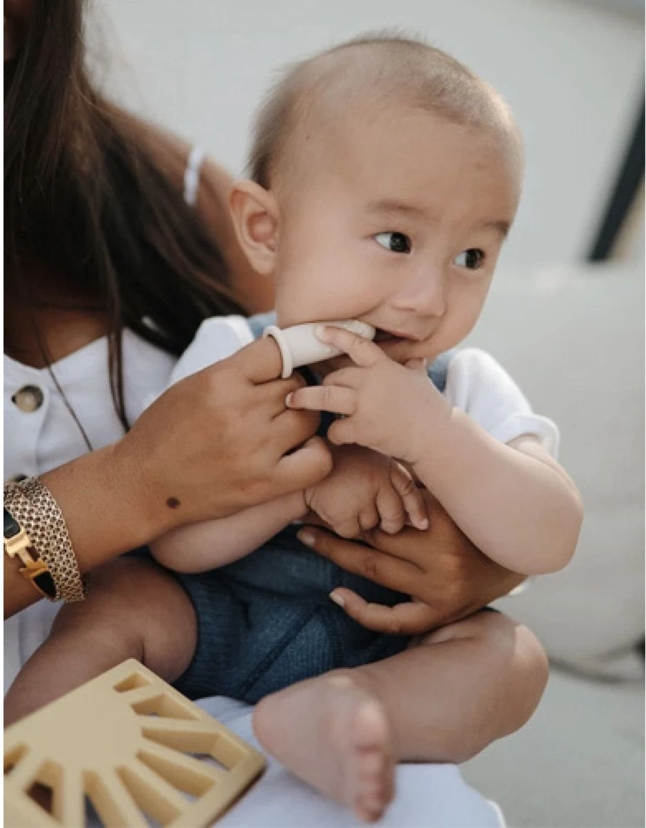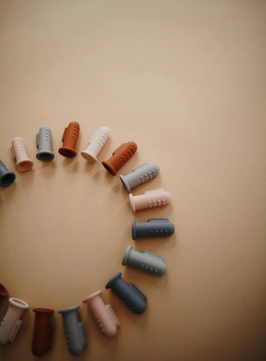 Komen de eerste tandjes van je baby door? Begin dan met poetsen met de baby tandenborstel van Mushie.