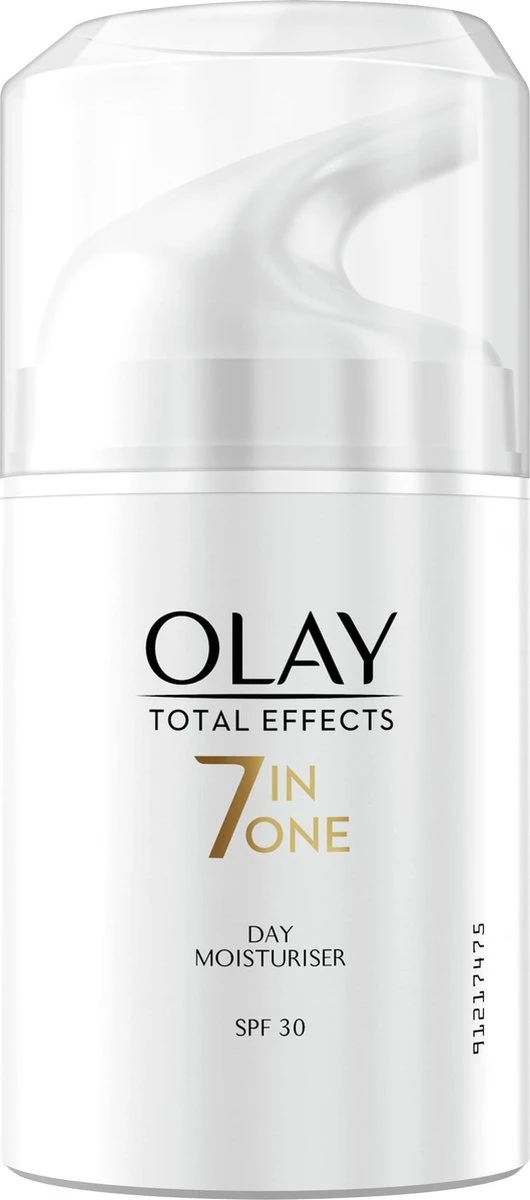De formule van Olay Total Effects, zit vol met vitaminen B3, C, E en Pro-Vitamine B5, die antioxidanten bevatten en de hydratatie en vernieuwing van het huidoppervlak verbeteren.