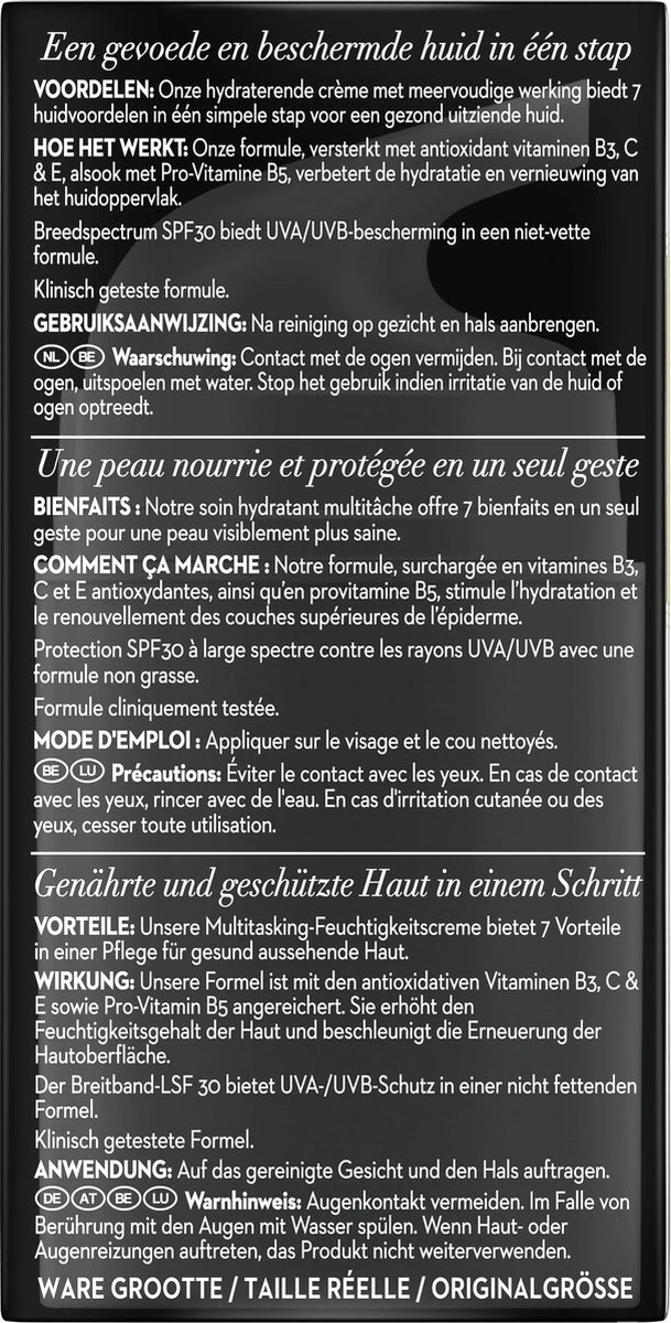 - Deze 7in1 hydraterende crème met SPF 30 en Niacinamide biedt 7 huidvoordelen in één eenvoudige stap