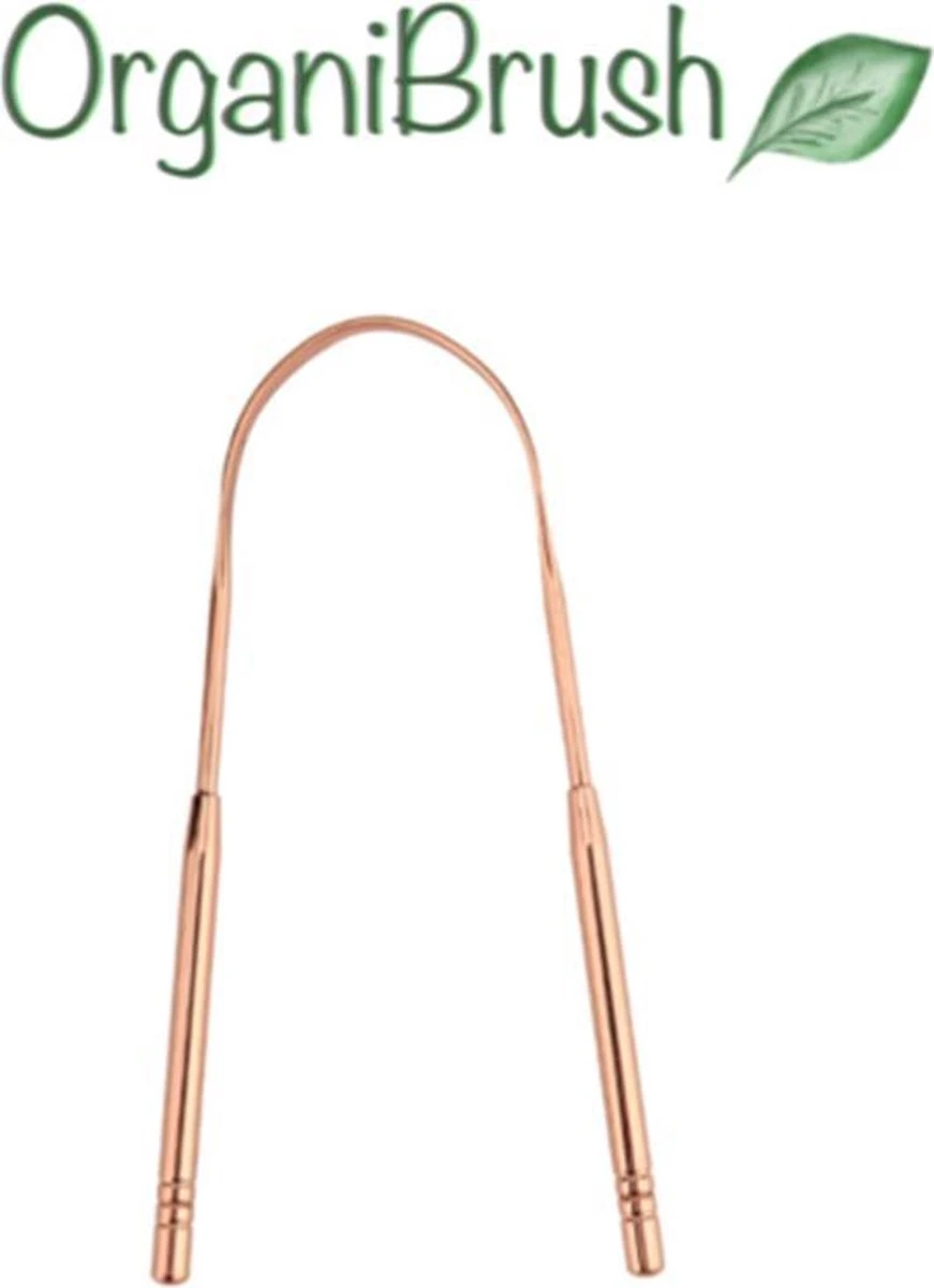 De buitenkant van de tongschraper van OrganiBrush is gemaakt van 100% koper. Dit materiaal is gekozen omdat koper van nature antibacterieel is. Daarnaast bevat de tongschraper geen schadelijke stoffen. Dit betekent dat wanneer u de tongschraper weggooit dit geen nadelige effecten heeft op het milieu. Bovendien heeft de tongschraper van OrganiBrush een gebogen en glad oppervlak, waardoor u makkelijker achterin de mond kunt komen en u de tongschraper gemakkelijk kan schoonhouden.