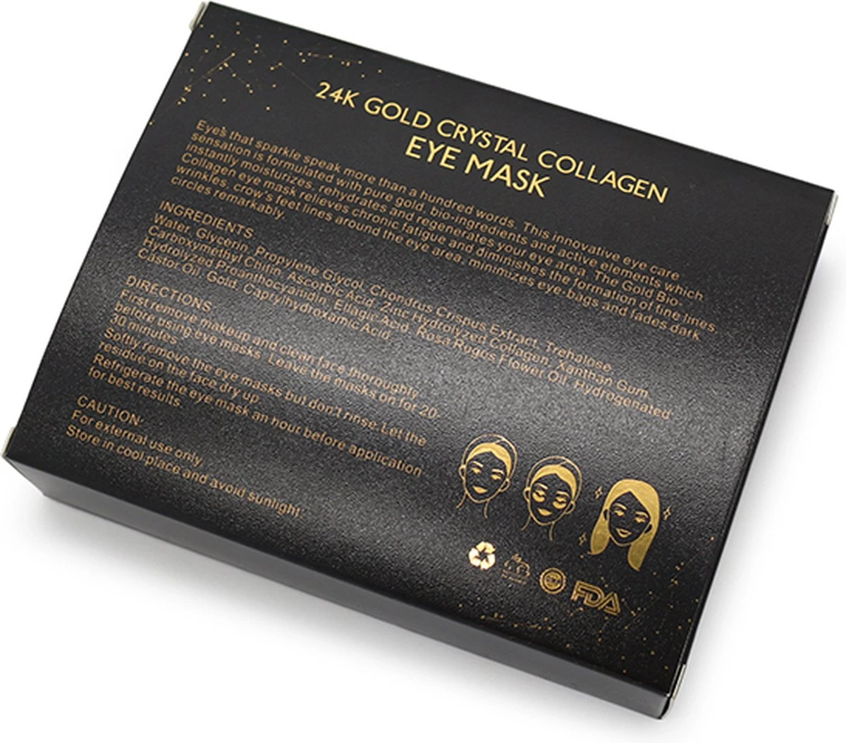 Met behulp van dit oogmasker met collageen zorg je ervoor dat rimpels, donkere cirkels en wallen onder de ogen worden verminderd. Het actieve 24k goud heeft het vermogen om schadelijke gifstoffen te verdrijven, de huid te hydrateren, bloedcirculatie te laten toenemen en het cellulaire metabolisme te verbeteren. Daarbij zorgt het oogmasker dat de huid weer zacht en soepel wordt. Het product bevat 24 stuks (12 Paar).