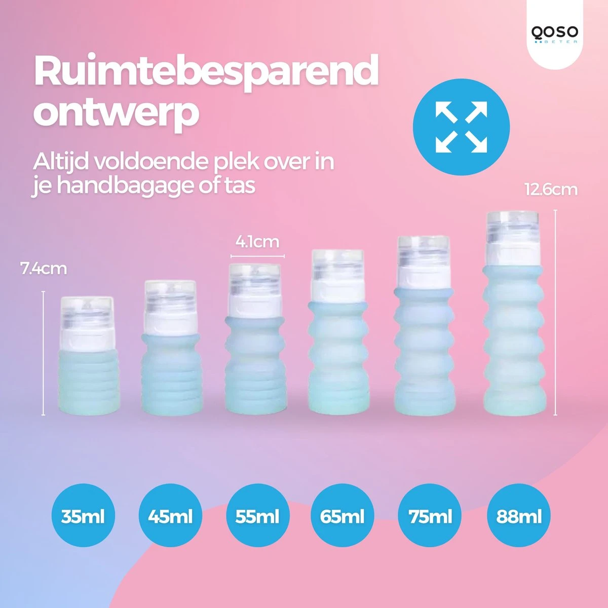 - Siliconen flesjes kunnen niet breken, perfect voor hardhandig behandelde reisbagage