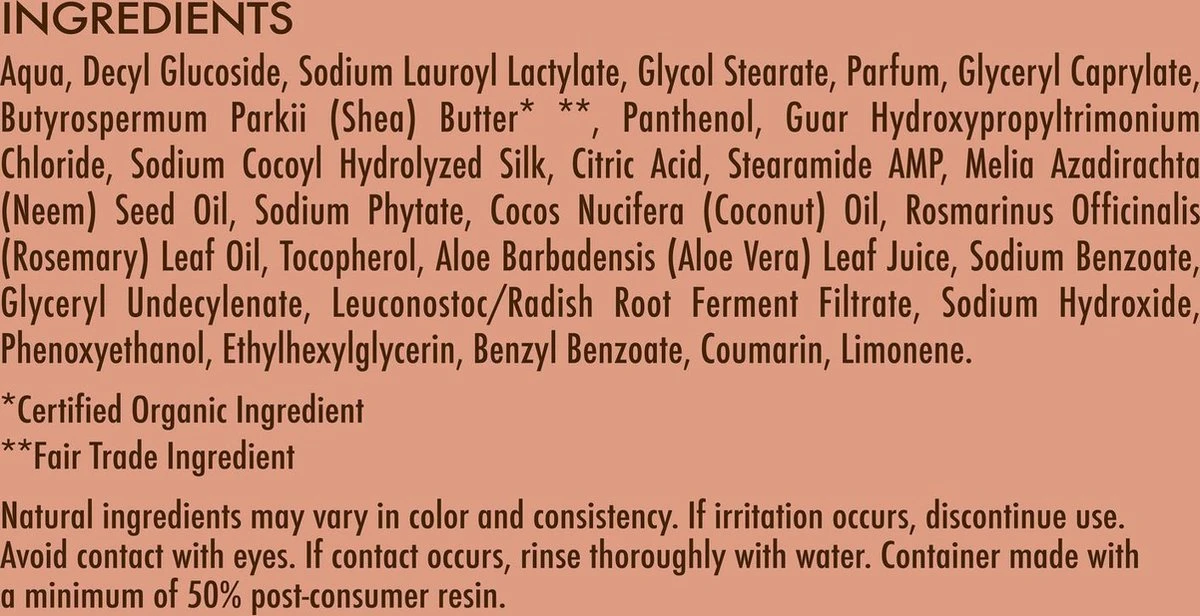 Breng de shampoo aan op nat haar, masseer het zachtjes in, zodat het rijkelijk schuimt. Spoel het vervolgens grondig uit met water; herhaal indien nodig. Voor het beste resultaat gebruik na het wassen de Coconut & Hibiscus Conditioner; na de wasbeurt breng je je krullen in model met de hair smoothie en gel soufflé.