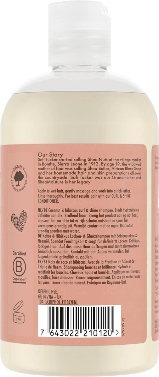 Shea Moisture Coconut & Hibiscus Shampoo Curl & shine is ontworpen om dik en krullend haar weer makkelijk onder controle te krijgen en je krullen te definiëren.